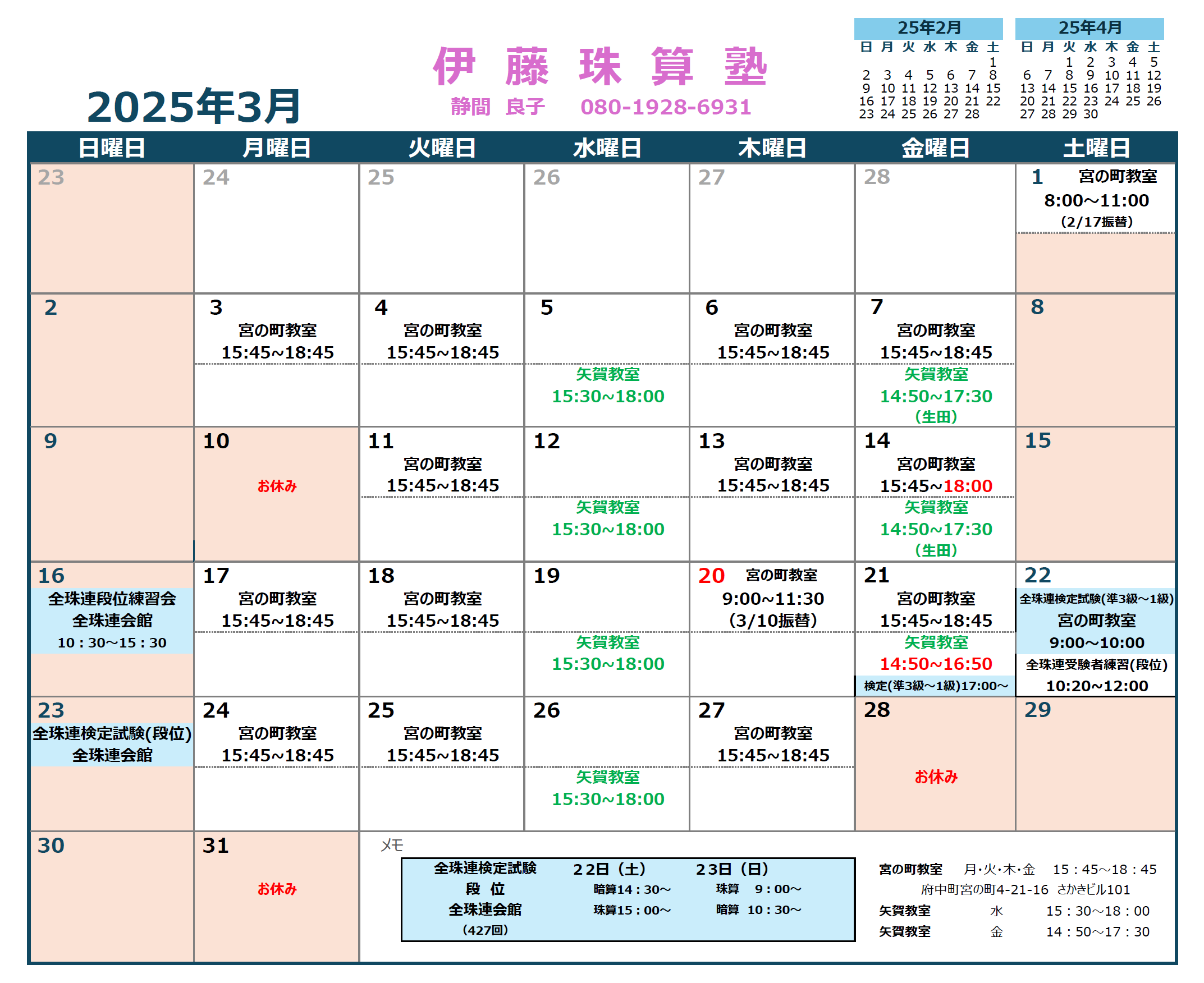 教室の教室案内をご覧ください