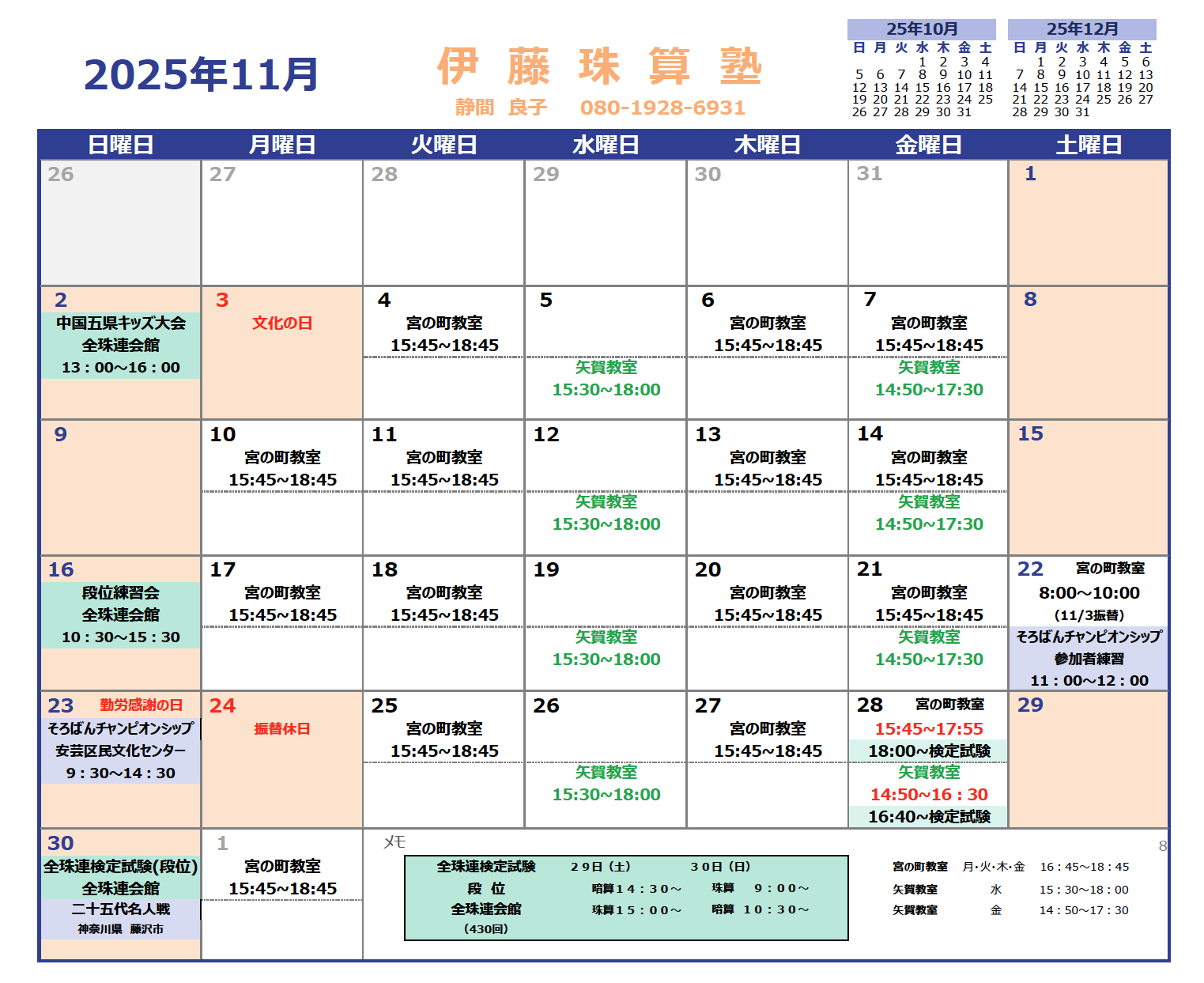 教室の教室案内をご覧ください