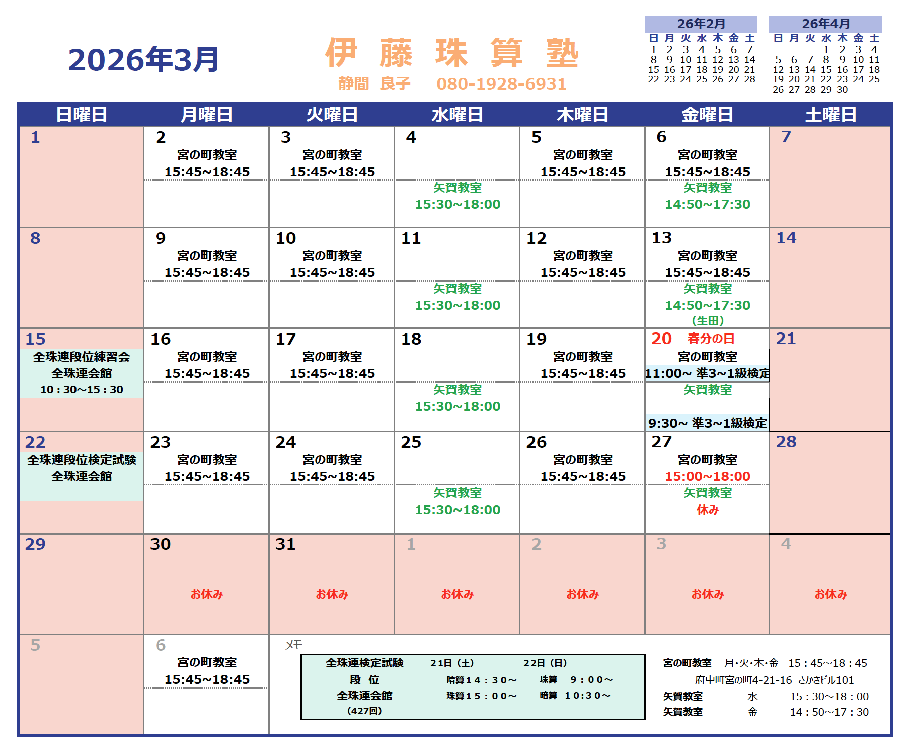 教室の教室案内をご覧ください